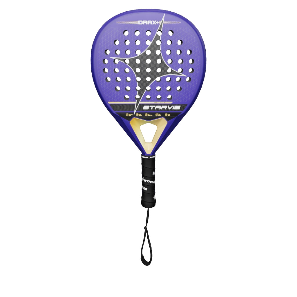 La StarVie Drax + 2026 es una pala con forma de lágrima pensada para jugadores versátiles que buscan el equilibrio perfecto entre control, potencia y comodidad. Su construcción con carbono 12K de alta calidad y tecnologías que optimizan la estabilidad y la sensación de golpeo hacen de esta pala una opción ideal para quienes quieren rendimiento en todas las fases del juego, sin comprometer el confort.